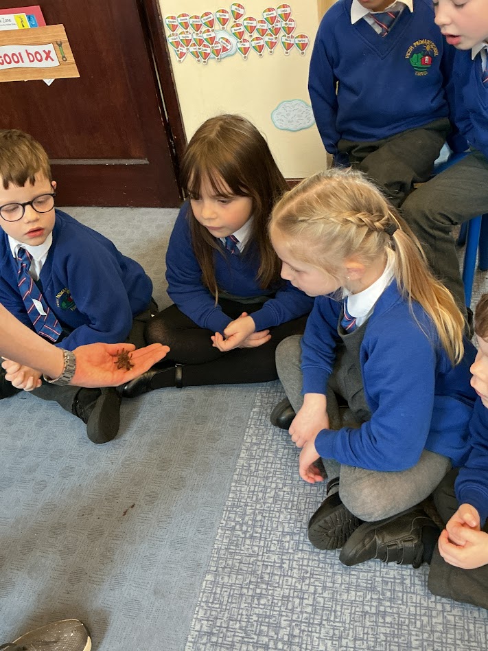 Later on in the week, we had a discussion about baby animals and what we call them. We were lucky to have a visitor from Longleat who taught us all about the 5 animal groups. We conducted an investigation to see whether blubber works to keep penguins and other polar animals warm. We used a vegan fat blubber glove and tested it in the some icy, cold water. It kept one hand warm but the unprotected hand got cold very quickly! After the experiment, we discussed our results.