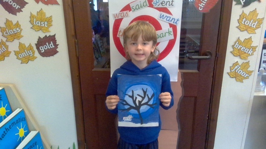 This week we created a beautiful Winter Scene. We started by exploring colour and how to make as many tones of one colour as possible using white. We then painted a winter sunset starting with white, progressing to dark purple. To improve our sketching and cutting skills we drew a winter tree using a template and very carefully cut it out. Next, we stuck the tree on to our winter sunset to create a silhouette and discussed the effect of light and dark. Finally, we sketched a fox, cut it out and stuck it on the foreground of our winter scene.