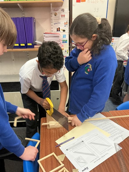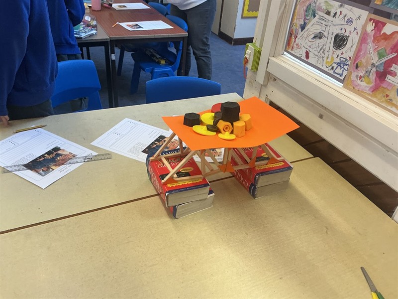 This week was DT week- we learnt all about bridges! To begin with, we learnt about two types of bridges: an arch bridge and a beam bridge. We looked at the specialist subject vocabulary and a range of real bridges. We discussed the beams, arches, supports and walls. We then tested our bridge knowledge and made paper prototypes of bridges. Later on, we learnt about truss bridges. They are made up of lots of triangles. The triangles will help to take the pressure of the weight on a bridge. Finally, we learnt how to make our own wooden truss bridge. We had to measure our pieces of dowel very carefully to ensure our bridge parts were accurately assembled. We used Tenon saws to cut the dowel against a bench hook (being careful of our fingers!) then used sandpaper to smooth any rough edges. We then used a glue gun (which was very hot!) to glue our pieces of wood together. Next, we used card triangles as support. We assembled the bridge together which took a lot of team work but we did it!