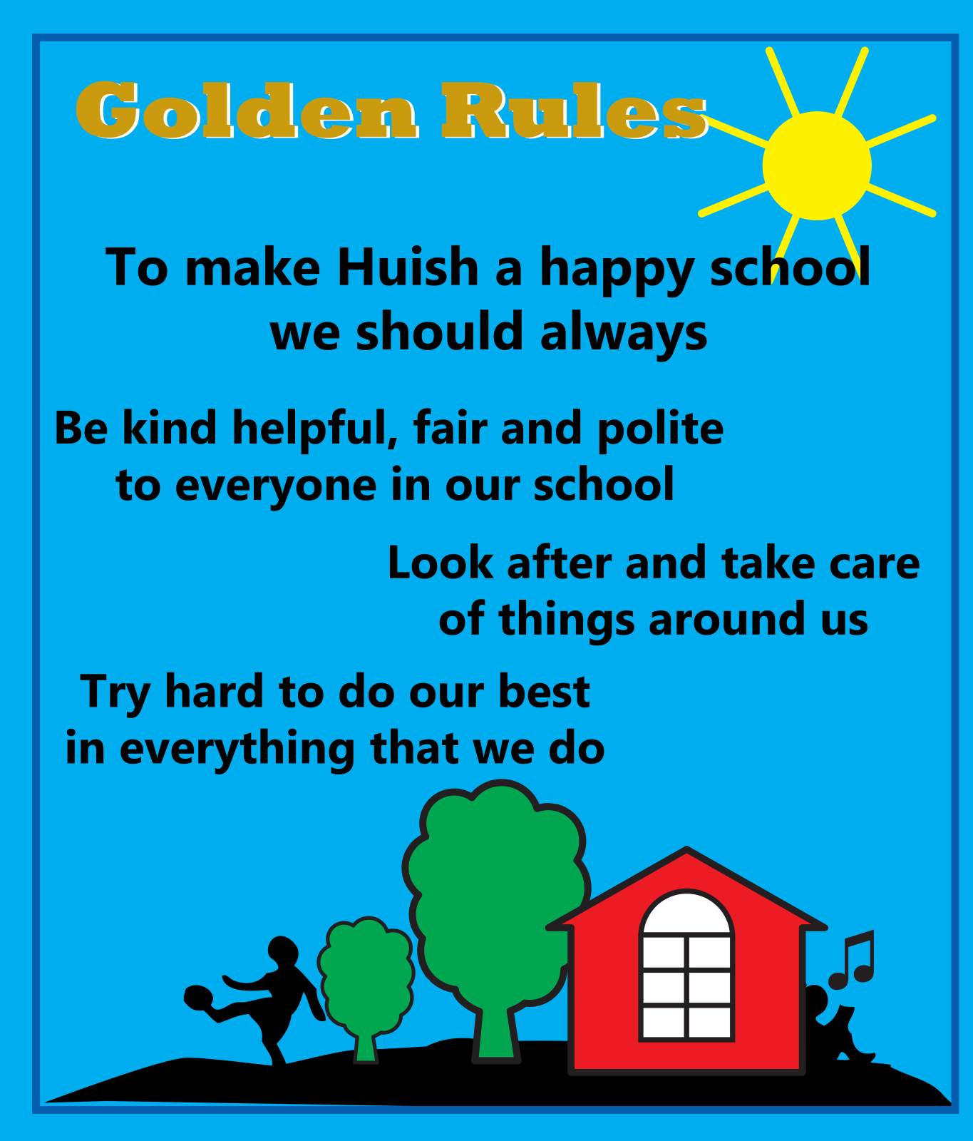 Our school has ‘Golden Rules’ which promote the well-being of the individual and the school as a whole. Each class reinforces those rules and they are a central part of the school ethos. They include being kind, helpful, fair and polite to everyone in our school; look after and take care of things around us; try hard to do our best in everything we do. The school has a positive behaviour policy that sets out rewards and sanctions. We encourage children to recognise rights and how these go hand in hand with responsibility