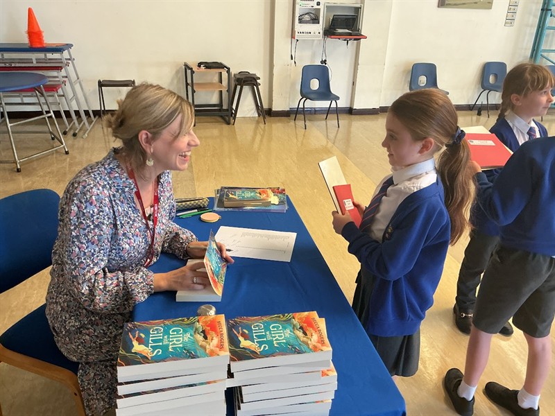On Thursday 9th October, we were very lucky to have Becca Rogers, author of ‘The Girl With Gills’, visit our school and speak to our children in Key Stage Two. She captured their attention and inspired creativity through a mixture of storytelling and writing prompts, keeping all of the children excited, enthused and engaged throughout. Becca then took the time to speak individually to all of the children receiving a signed book, which absolutely made their day. An absolutely brilliant morning! The children are still sharing all of their wonderful ideas for writing, inspired by Becca, days later. Thank you to Yeovil Waterstones for arranging the visit.