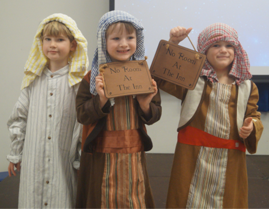 Mary and Joseph found shelter at the stable and welcomed baby Jesus surrounded by Kings, pages, shepherds, travellers, angels, innkeepers, stars, donkeys, camels and sheep! The audience joined in with the song 'We Wish you a Merry Christmas' to bring Christmas to Huish!