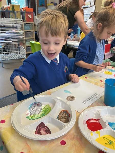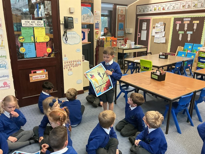 In Year 1 we have been learning about the Russian abstract artist, Wassily Kandinsky. He believed bright warm colours made people feel happy and cool colours made people feel calm. We first looked at some of his artwork and discussed what we liked about it. We completed a Walking Gallery where we walked around the classroom and discussed what we liked about his work.