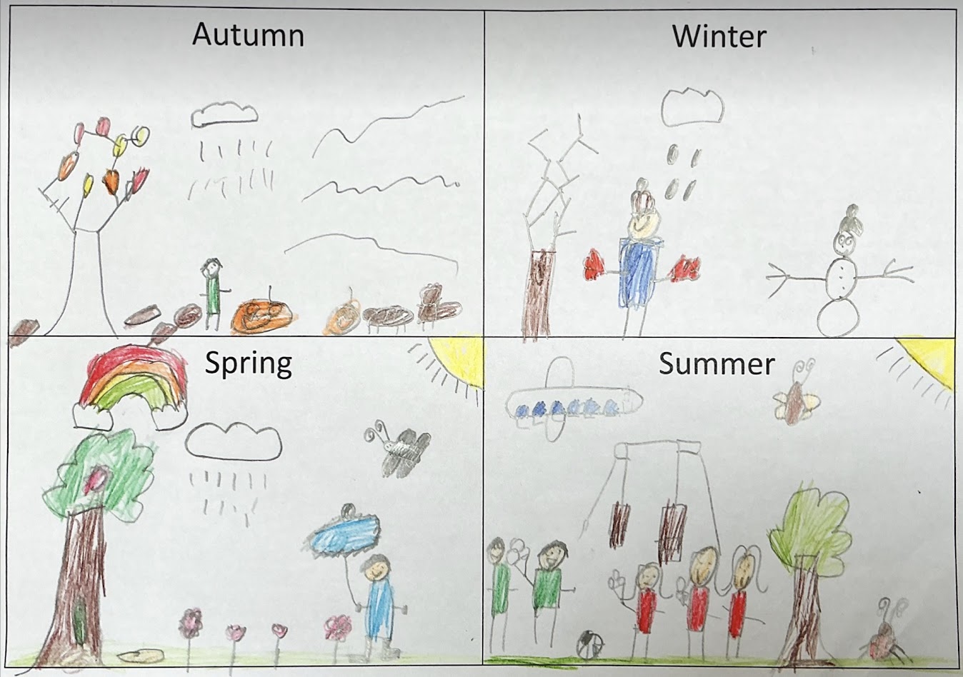This year’s theme for science week is about being curious. We discussed so many things we were curious about. To recap our knowledge of seasons, we looked at what happens in each season and some signs of Spring that we were starting to notice. After discussion, we created a seasons grid to show our understanding of each season. We thought about the changes that happen to trees, animals, weather and people.