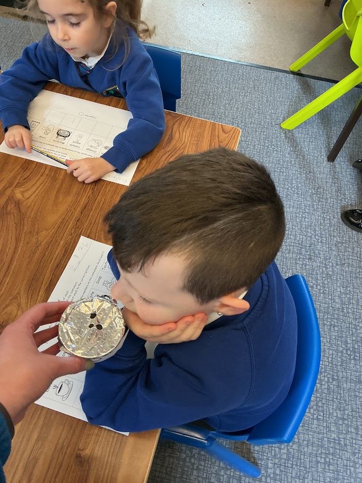 We learnt about our 5 senses: smell, taste, touch, sight and hear. We completed some investigations to see if we could use our senses, such as a taste test for different flavoured crisps, a touch test for items hidden in a bag, a hearing test where we tried to listen to things close and far away, and a smell test where we tried to guess different items just by smelling them!