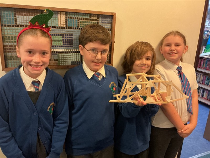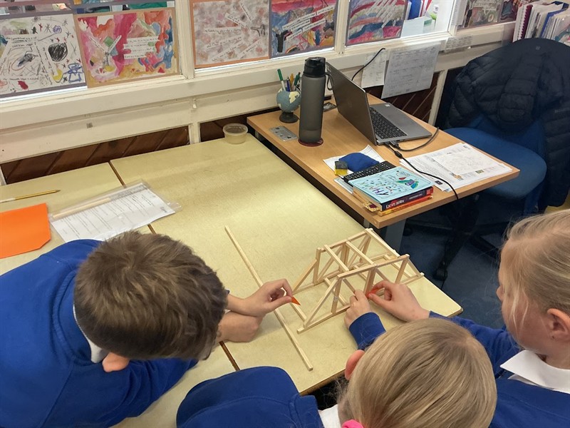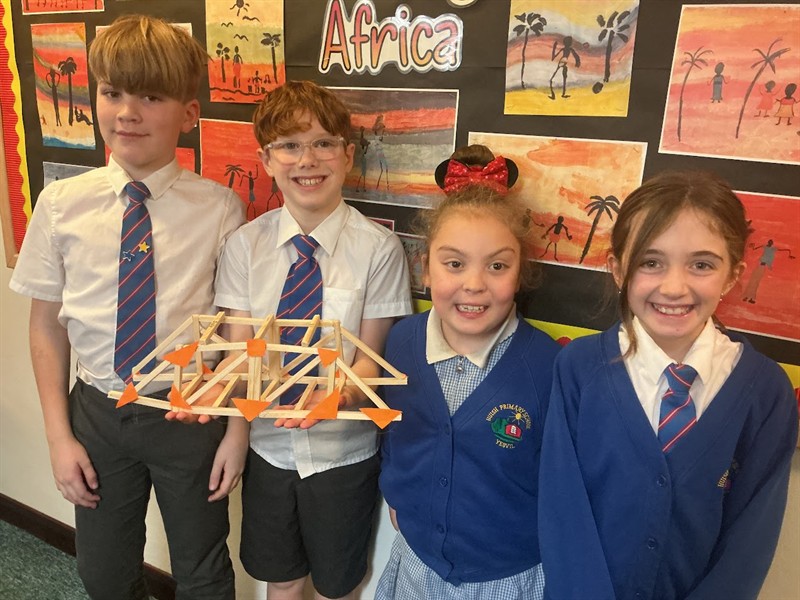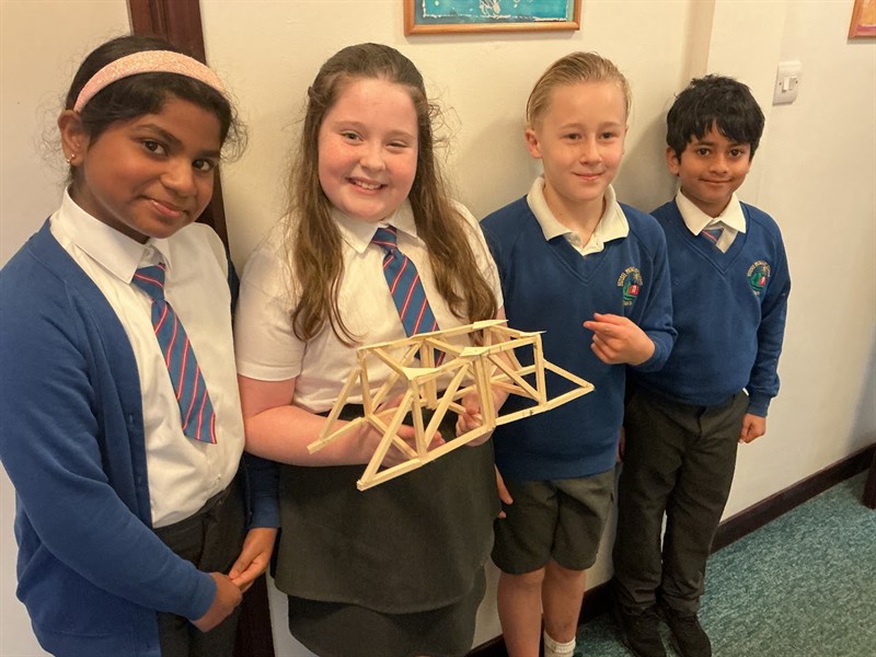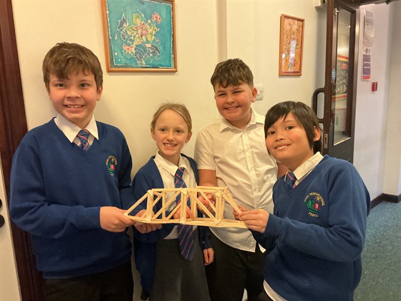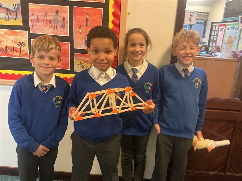 This week was DT week- we learnt all about bridges! To begin with, we learnt about two types of bridges: an arch bridge and a beam bridge. We looked at the specialist subject vocabulary and a range of real bridges. We discussed the beams, arches, supports and walls. We then tested our bridge knowledge and made paper prototypes of bridges. Later on, we learnt about truss bridges. They are made up of lots of triangles. The triangles will help to take the pressure of the weight on a bridge. Finally, we learnt how to make our own wooden truss bridge. We had to measure our pieces of dowel very carefully to ensure our bridge parts were accurately assembled. We used Tenon saws to cut the dowel against a bench hook (being careful of our fingers!) then used sandpaper to smooth any rough edges. We then used a glue gun (which was very hot!) to glue our pieces of wood together. Next, we used card triangles as support. We assembled the bridge together which took a lot of team work but we did it!